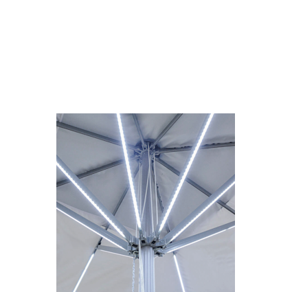 Wil je gasten ook ’s avonds laten genieten? Ga dan voor parasols met ingebouwde ledverlichting, stijlvol verwerkt in het frame. Zo blijft de sfeer zichtbaar tot in de late uurtjes.