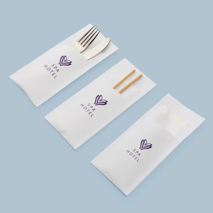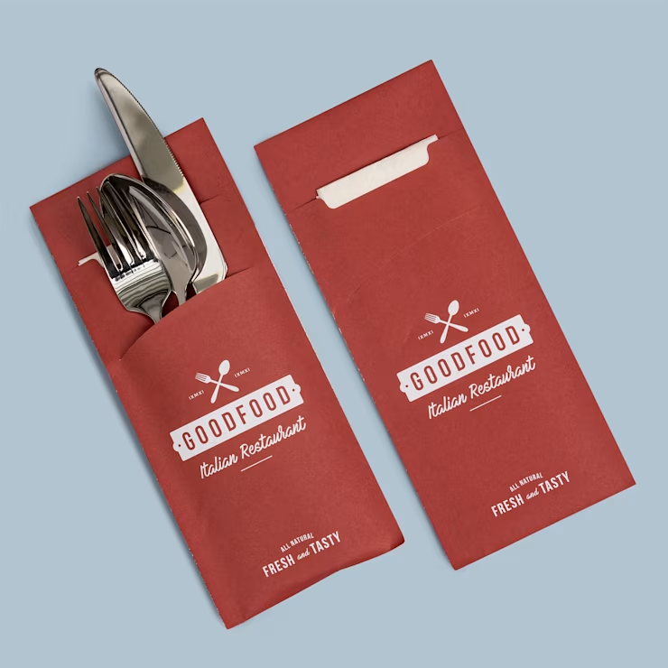 Maak je tafelsetting compleet met bestekzakjes die stijl en branding combineren. Bestel vandaag nog jouw premium bestekzakjes en geef je gasten een opvallend, professioneel ontvangst!
