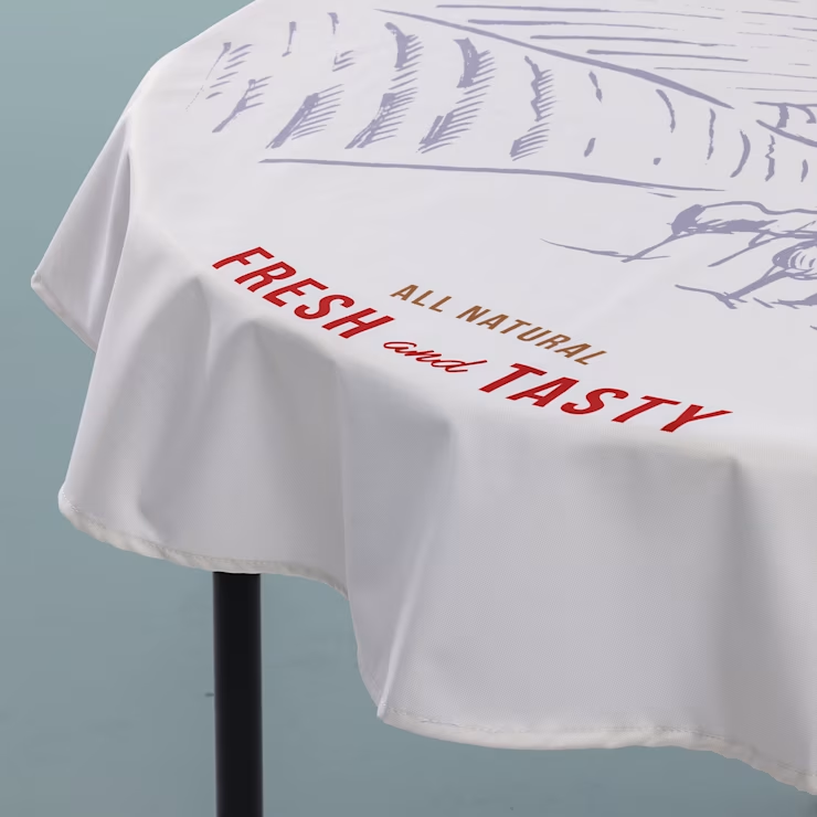 Maak van elke tafel een blikvanger met bedrukte tafelkleden in jouw eigen stijl. Perfect voor horeca, evenementen of bruiloften. Jij bepaalt het design. Wij drukken jouw ontwerp haarscherp op wit materiaal, tot wel 25 meter lang! Of je nu tafels buiten op het terras wilt aankleden of binnen extra sfeer wilt creëren, met een bedrukt tafelkleed zit je altijd goed.