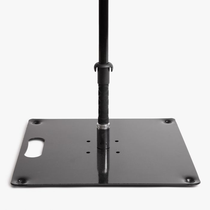 De Voetplaten zijn ontworpen om jouw beachflags een stevige en duurzame basis te geven. Door de meegeleverde rotator kan de vlag vrij draaien, waardoor winddruk en slijtage worden verminderd én je boodschap altijd leesbaar blijft. De voetplaat is gemaakt van zwart metaal en voorzien van handvatten, zodat je hem eenvoudig kunt verplaatsen. Je kiest tussen twee varianten: een standaard voetplaat van circa 5,4 kg met 40 × 40 cm, of een zwaardere 15 kg uitvoering met 50 × 50 cm. Beide versies hebben schroefgaten om de mast extra vast te zetten wanneer nodig.