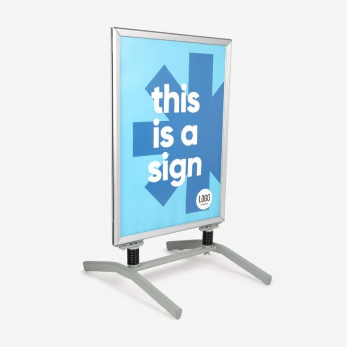 Het Stoepbord met swingvoet is een stabiele, robuuste en flexibele manier om jouw promotie, aanbieding of boodschap onder de aandacht te brengen bij voorbijgangers. Dankzij de solide aluminium constructie en de swingvoet-basis blijft het bord ook bij wind stabiel staan, terwijl de frame-voet licht meebeweegt, waardoor het minder snel omvalt. Je kunt posters in formaat A1 of A0 in het bord plaatsen en aan beide zijden dezelfde of verschillende posters tonen. De verwisseling van posters is eenvoudig en snel.